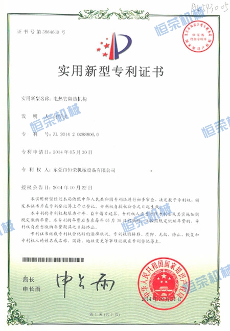 專利證書-電熱管隔熱機(jī)構(gòu)